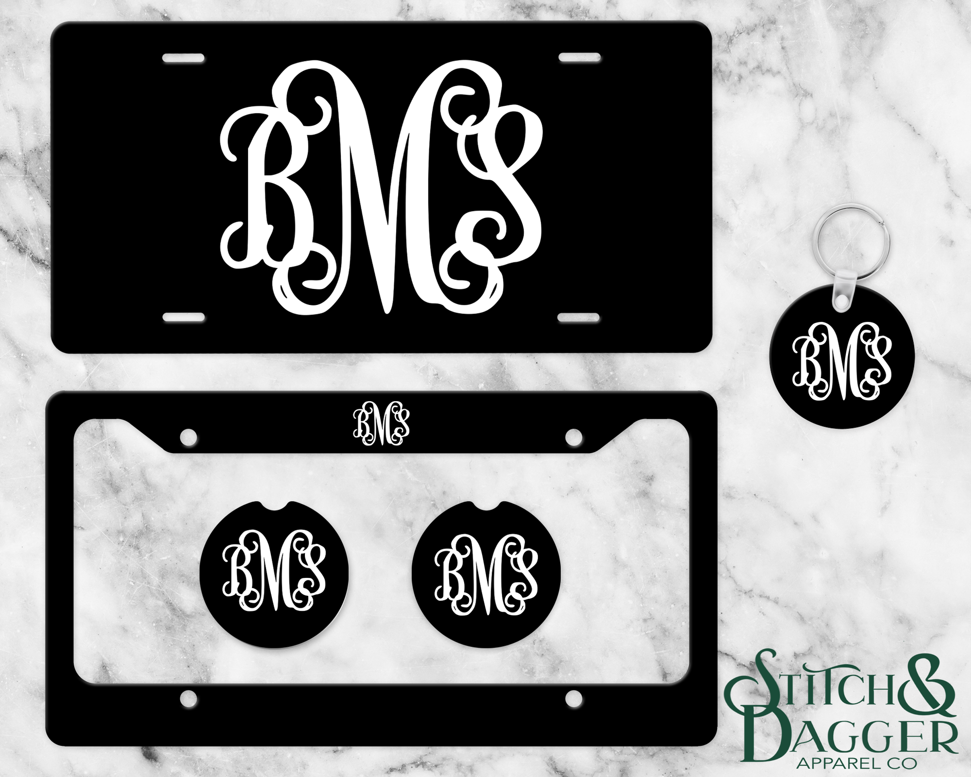 Black and White Monogram License Plate Set