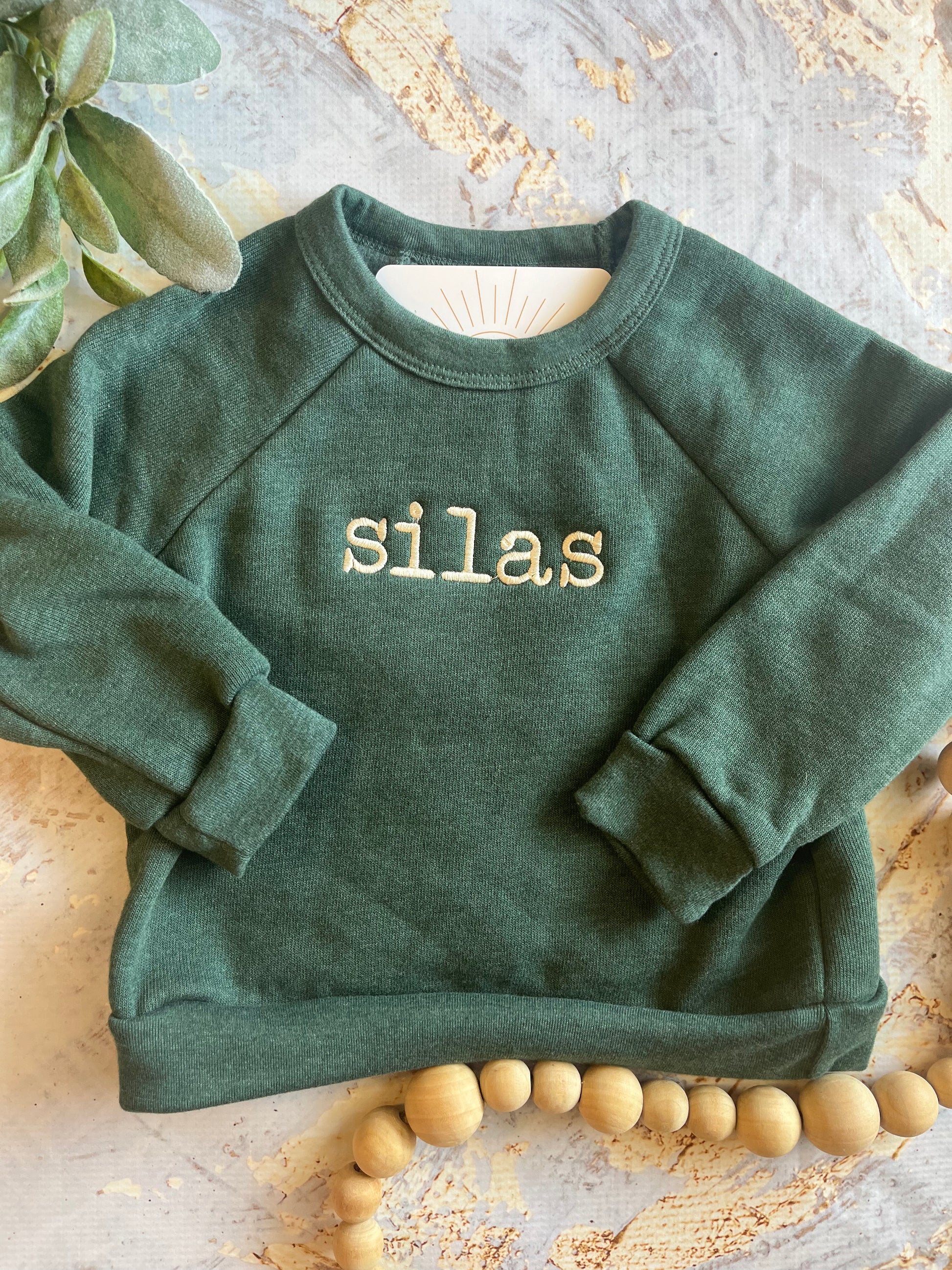 Let your little one rock their own look with this custom name sweatshirt! Add any name, word, or phrase - the possibilities are endless! Embroidered with care in sizes from 2T to Youth Large, this comfy sweatshirt will quickly become a wardrobe favorite. (P.S. Don't forget to spell-check!)