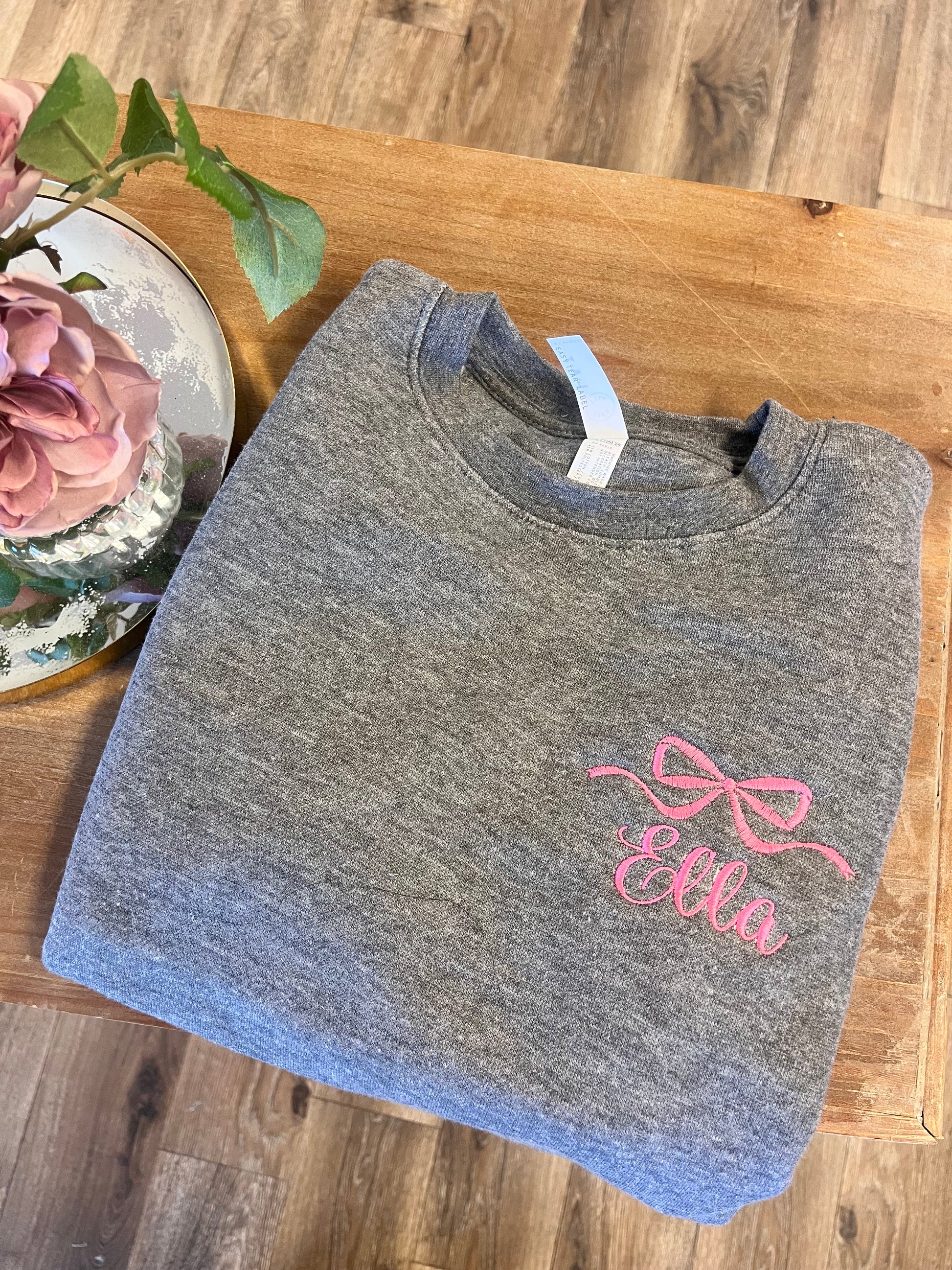 Let your little one rock their own look with this custom name sweatshirt! Add any name, word, or phrase - the possibilities are endless! Embroidered with care in sizes from 2T to Youth Large, this comfy sweatshirt will quickly become a wardrobe favorite. (P.S. Don't forget to spell-check!)