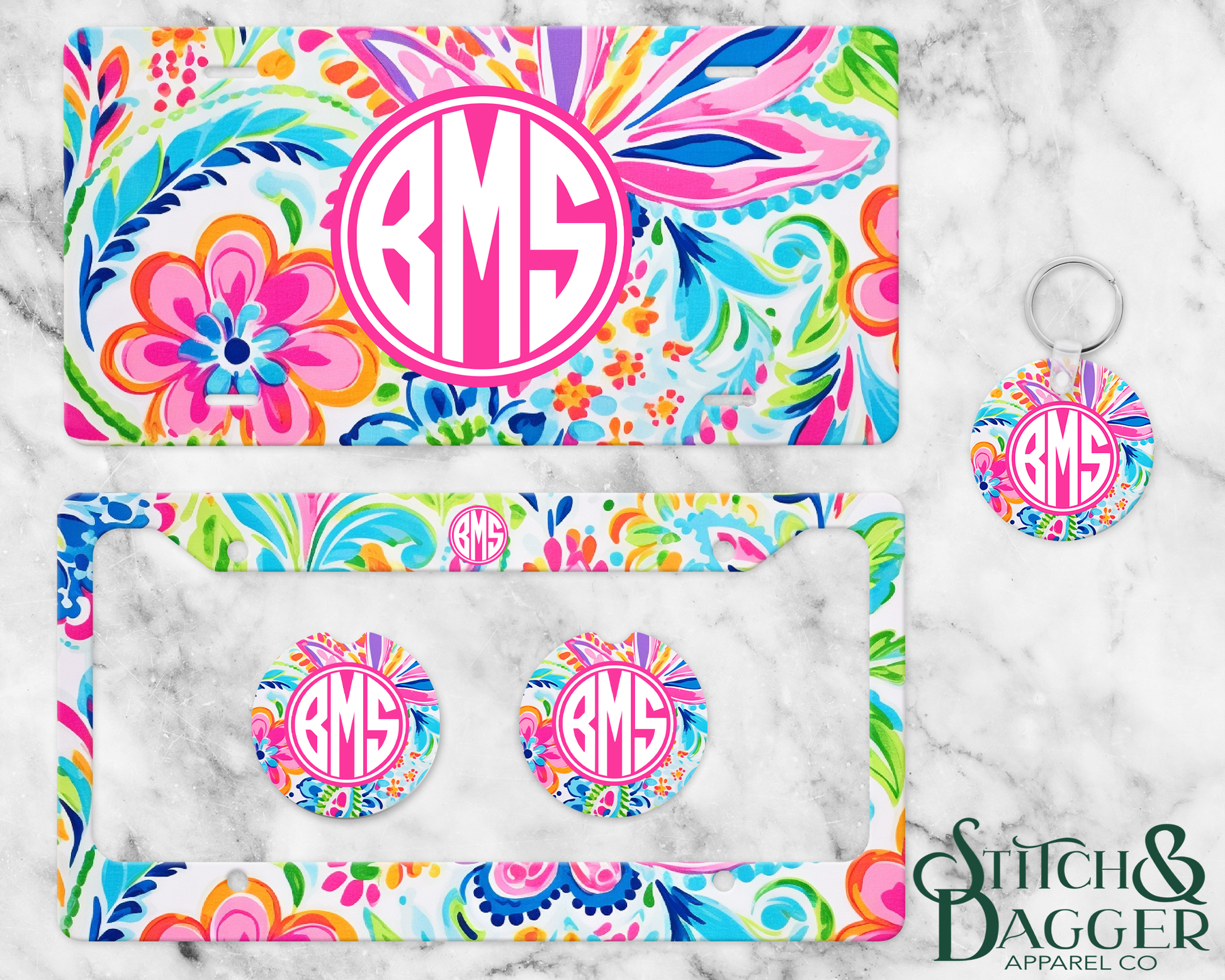 Rainbow Floral Monogram License Plate Set